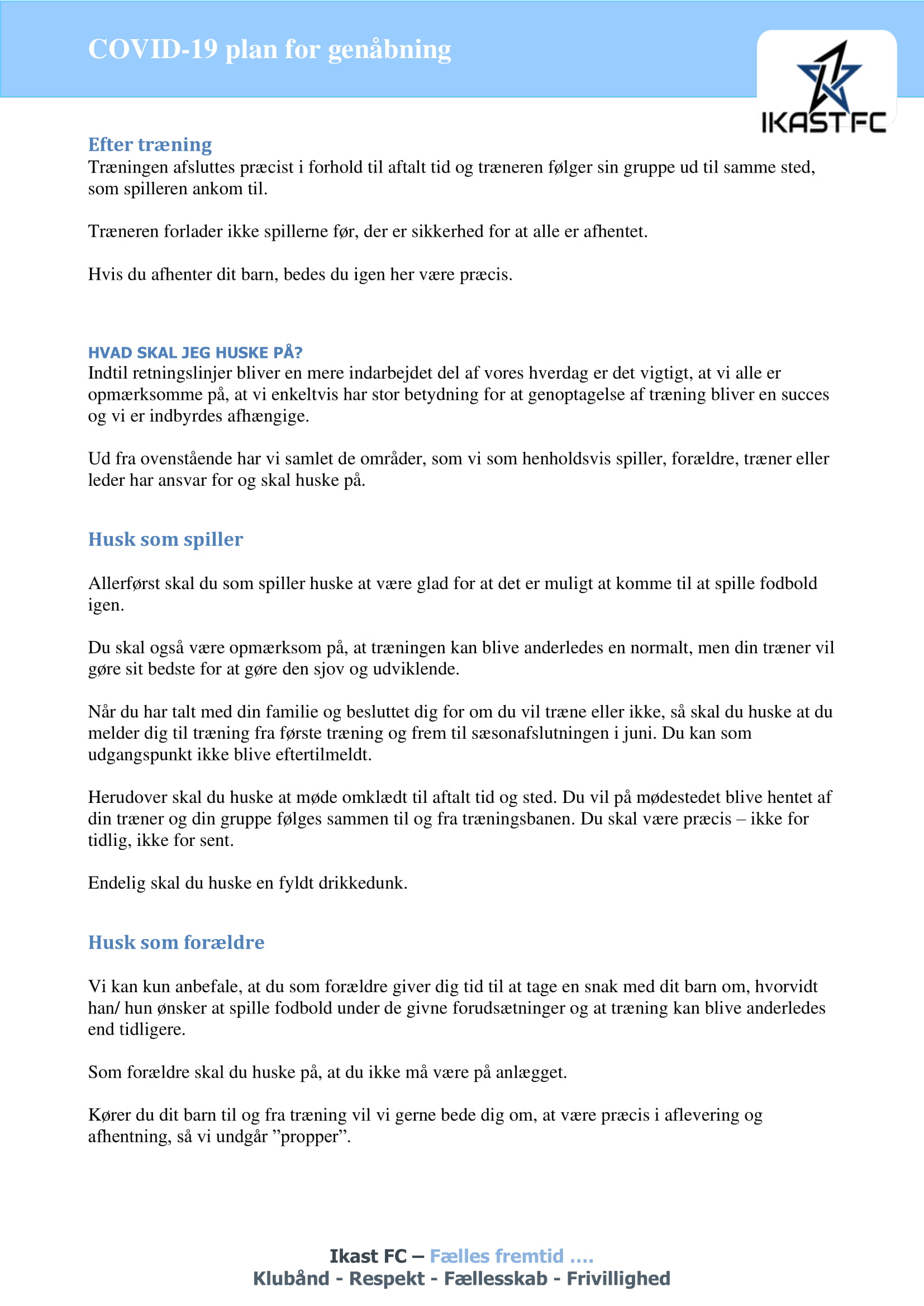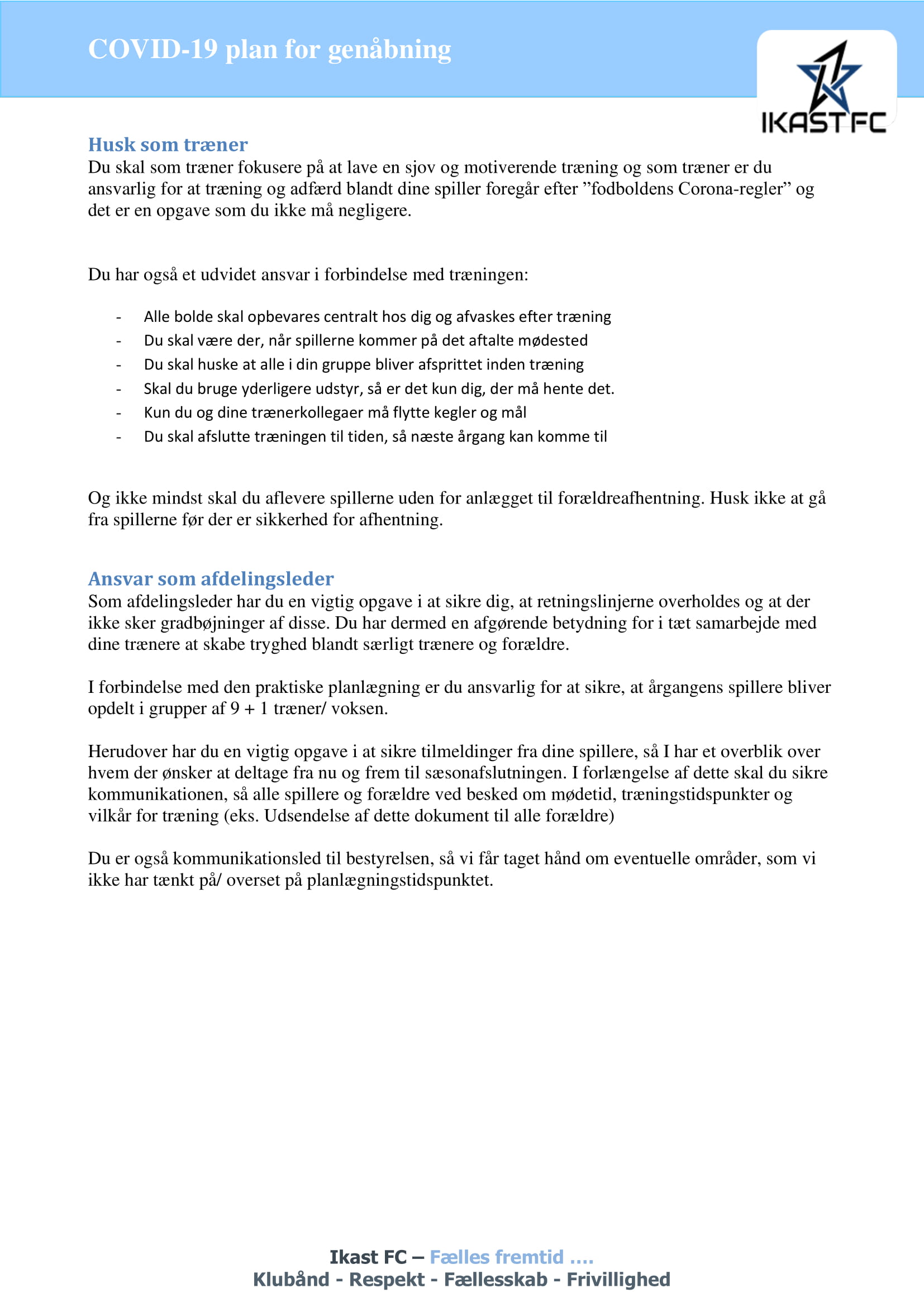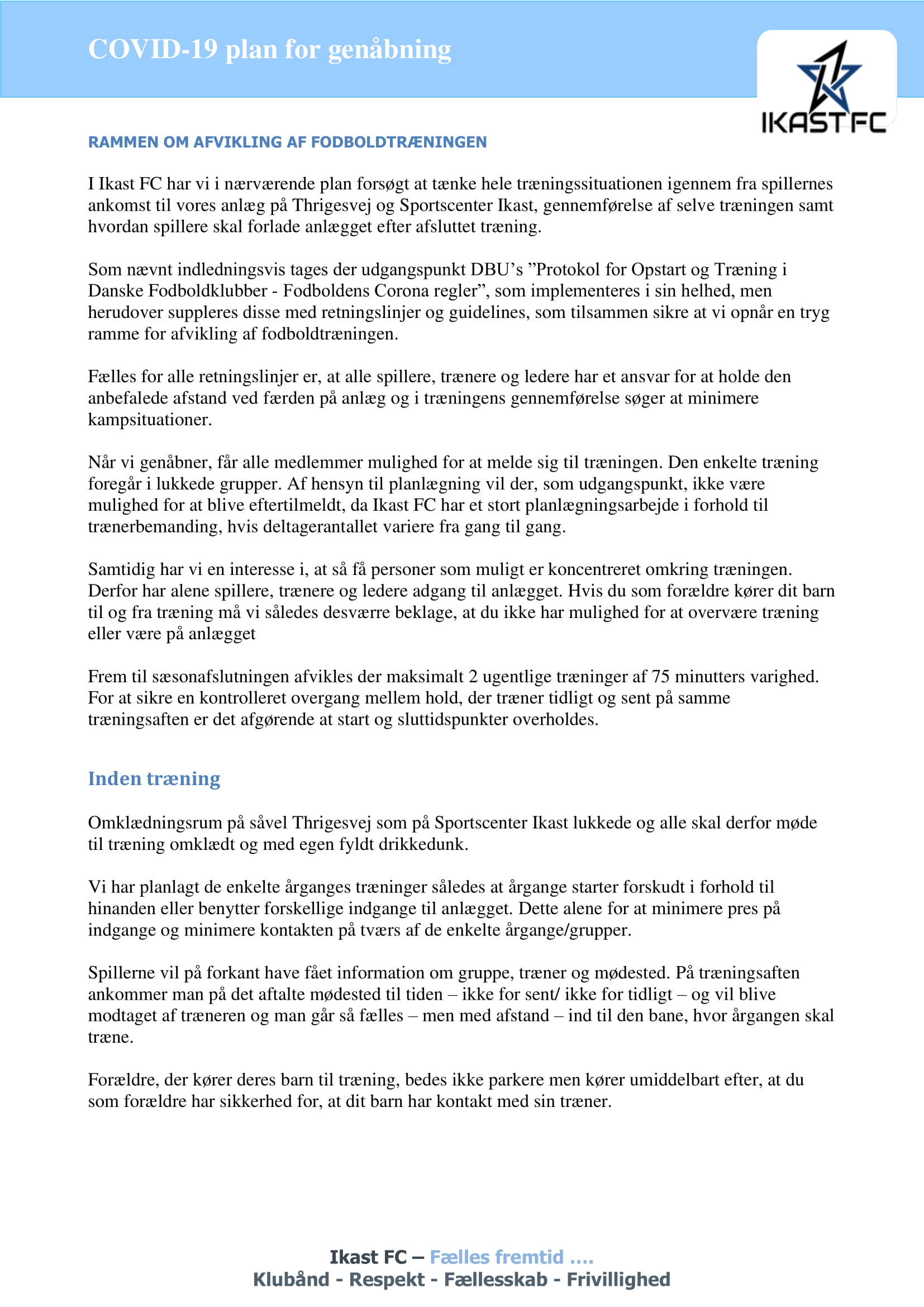 Ikast FC åbner op for fodboldtræning igen. Dette sker mandag d. 18 maj og det vil være begge lokationer, Stadion Allé og Thrigesvej, som åbner.