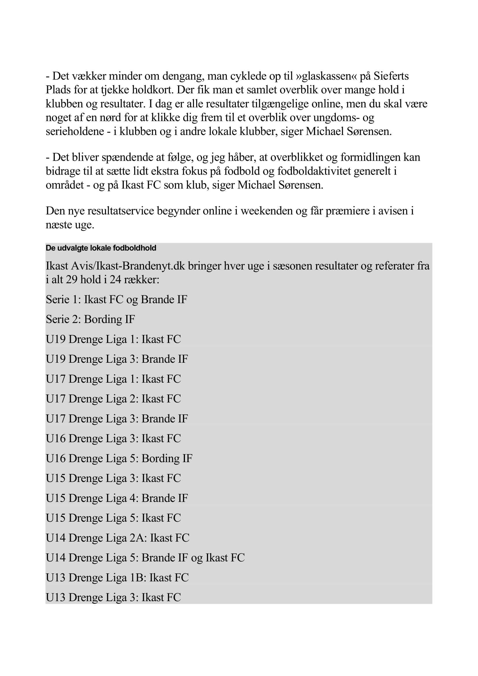 Sportslige målsætninger for Drenge / Piger U11 - U14